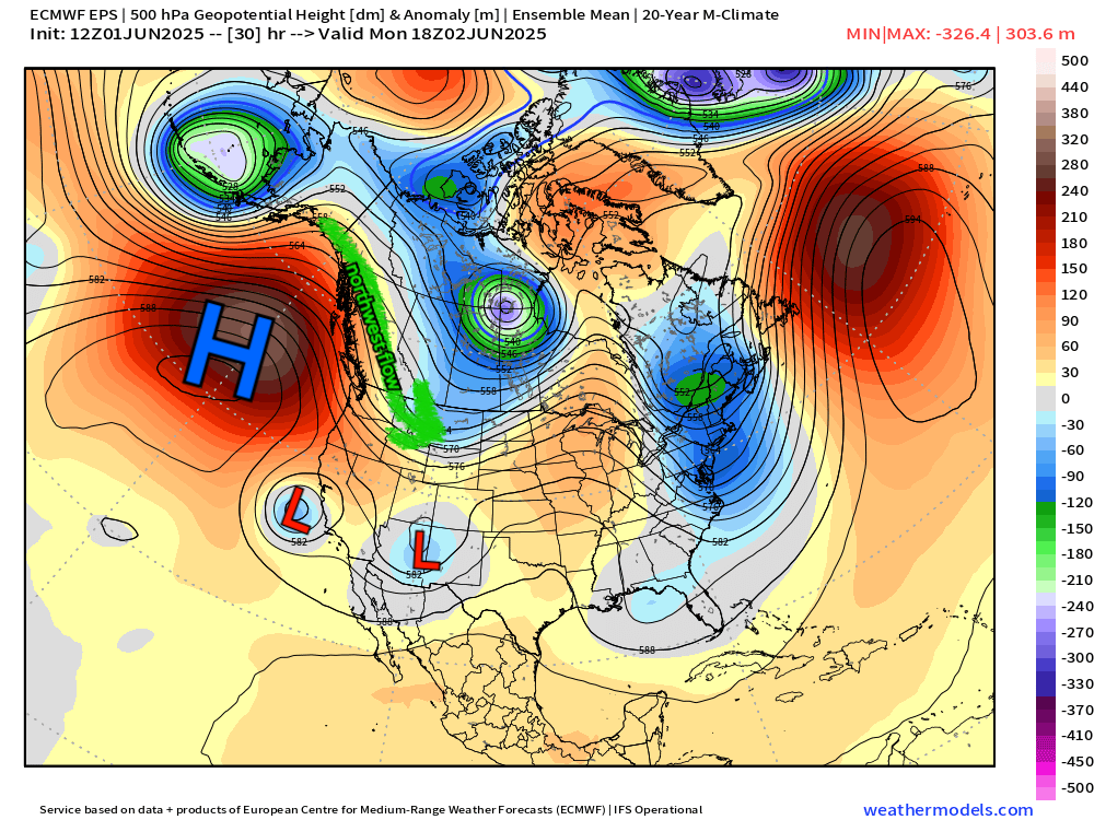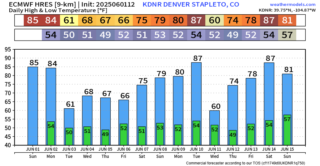 Overall this pattern should help keep eastern Colorado from developing drought through the first half of June... but you can already see what could be creeping in from out west. Once the summer ridge builds in, which looks to get strong mid-to-late month, mountain wildfires could become a concern.