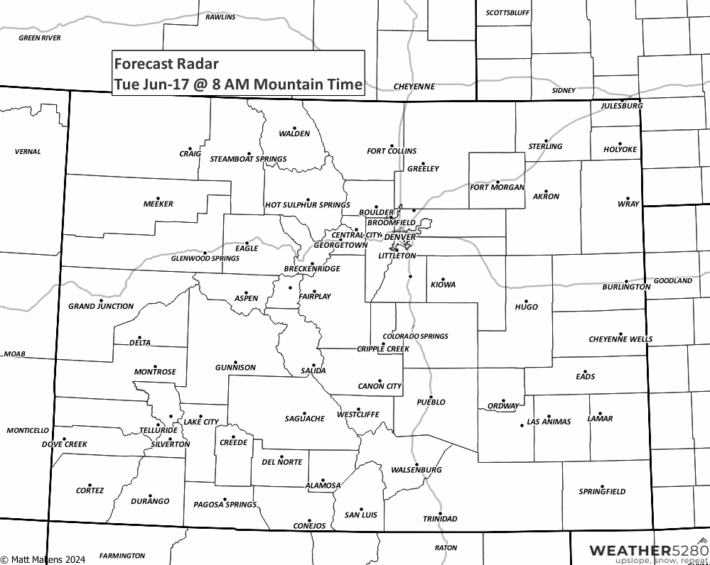 Today’s storms could begin as early as noon, especially from Denver northward. They’ll likely become more widespread through the early afternoon before quickly pushing east by the evening commute. Expect the most intense activity to be over by 6 PM. The main threats will be large hail and damaging wind gusts, with wind being the greater concern as storms organize into line segments east of I-25. Does your office building have a garage? If not, maybe go sit in a carwash...