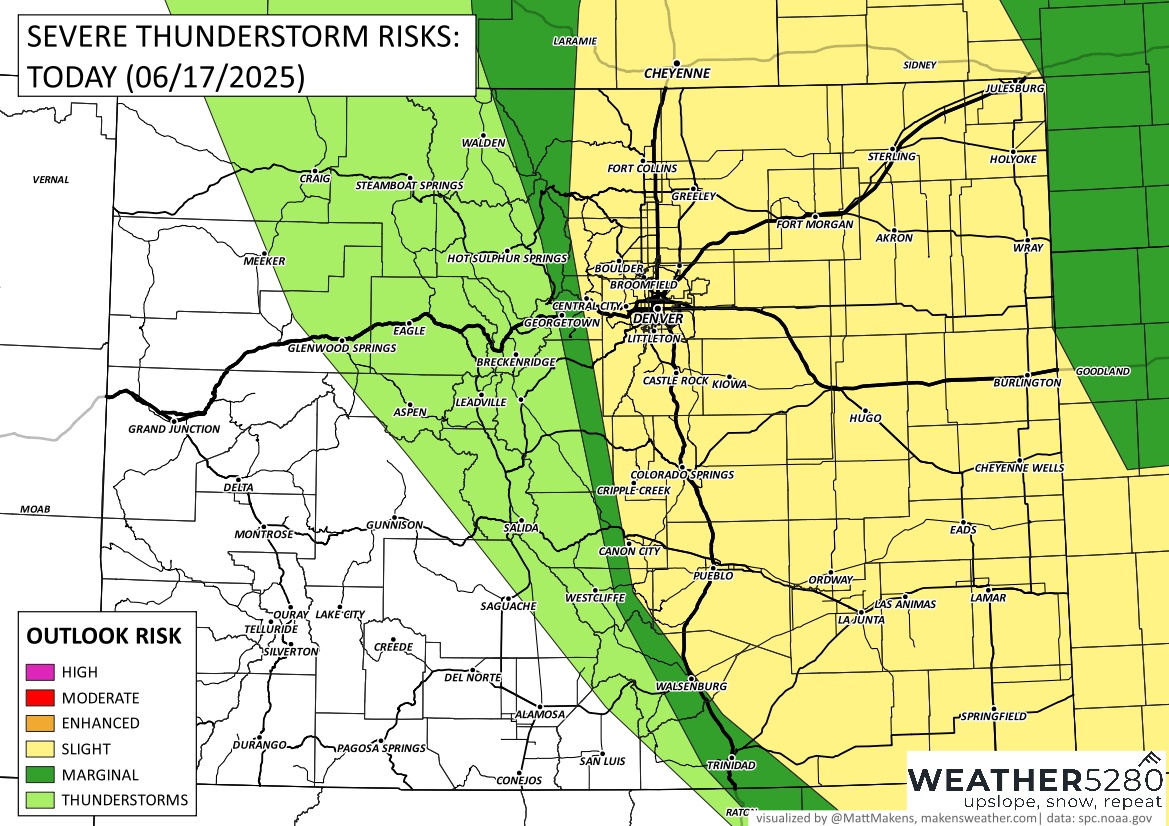 In brief: Watch for severe storms with hail and wind this afternoon along the I-25 corridor before heat builds later this week.