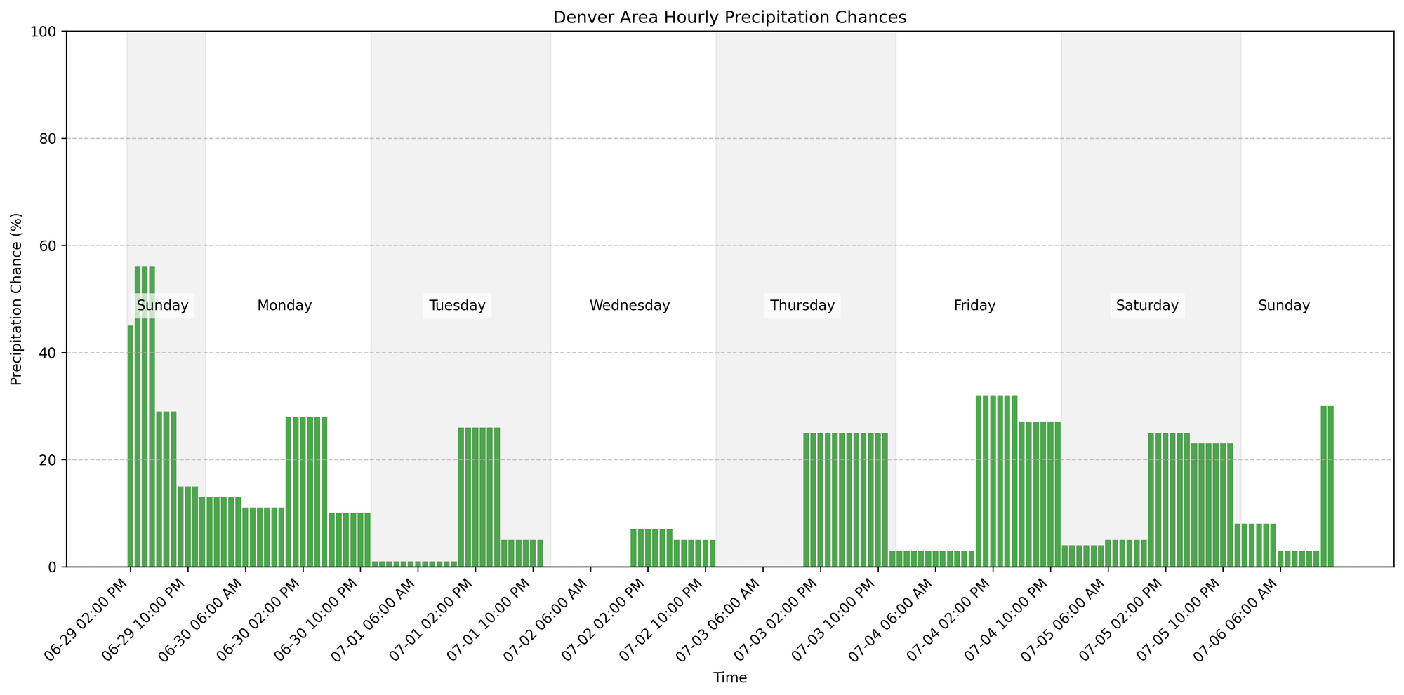 There is also a chance for some overnight thunderstorms, mainly between 2 and 6 AM, especially closer to the Wyoming and Nebraska borders. These storms would be more isolated but could still carry some strength if enough instability remains.